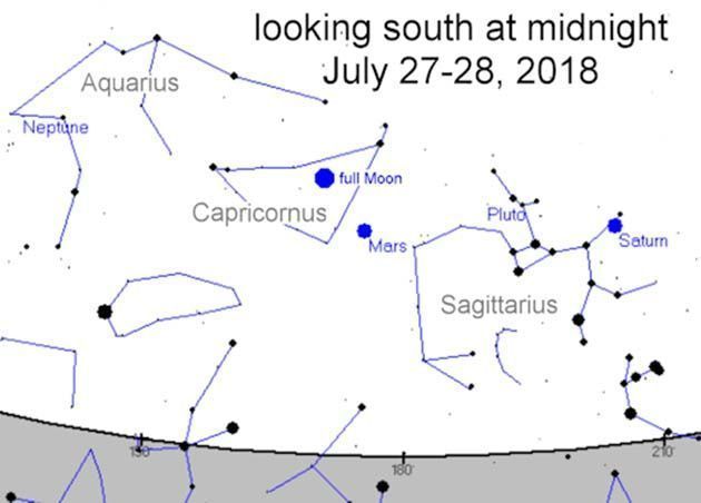 Durante julio de 2018, Marte alcanzó un brillo notable, superando a muchas estrellas principales del cielo nocturno. Su tonalidad rojiza se debía a la presencia de óxidos de hierro en su superficie, los mismos que le dieron el apodo de “planeta rojo”. Para observadores a simple vista, era una especie de “segunda estrella roja” acompañando a la Luna eclipsada. Para quienes contaban con telescopios o binoculares, ofrecía la oportunidad de intentar distinguir algunas de sus estructuras, aunque en esa época también se registró una gran tormenta de polvo global que cubrió buena parte del planeta.