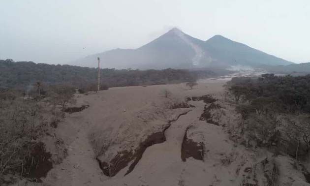 El paisaje cubierto de cenizas a raíz de la erupción del Volcán de Fuego en Guatemala.