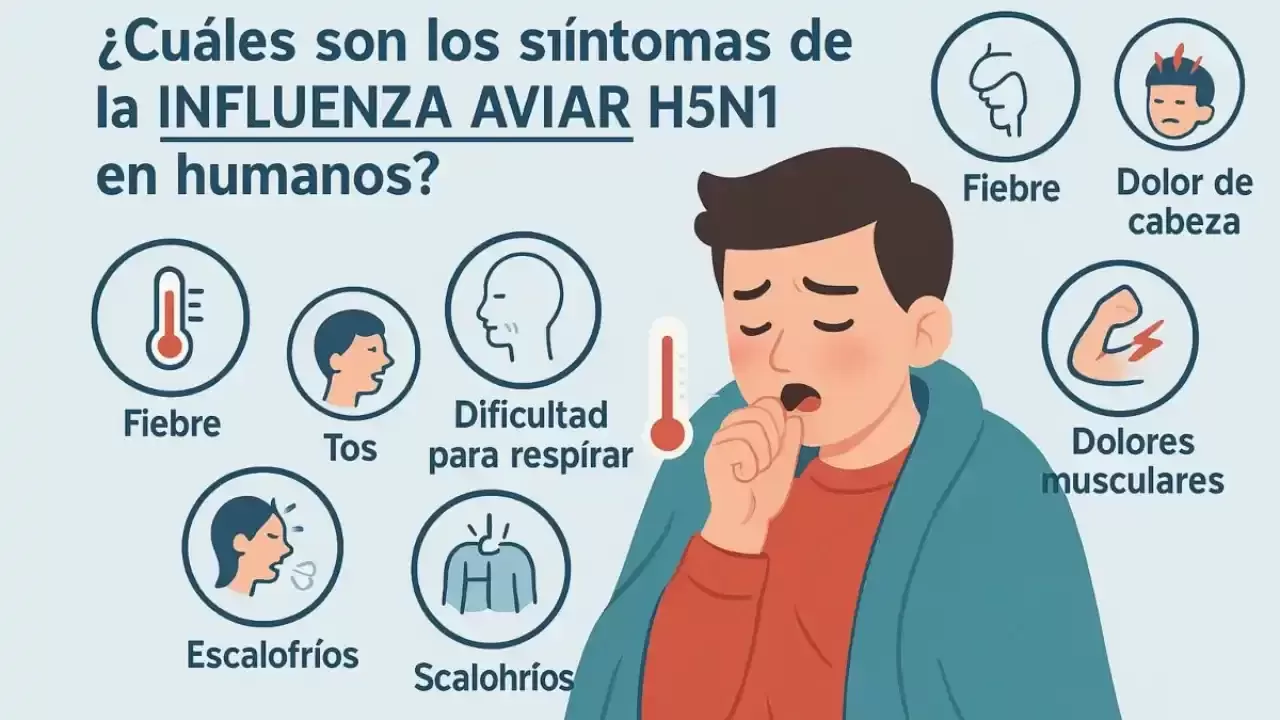 Los síntomas de la gripe aviar en humanos pueden variar desde leves hasta graves, dependiendo del subtipo viral y el estado de salud del individuo. Entre los síntomas comunes se incluyen:
