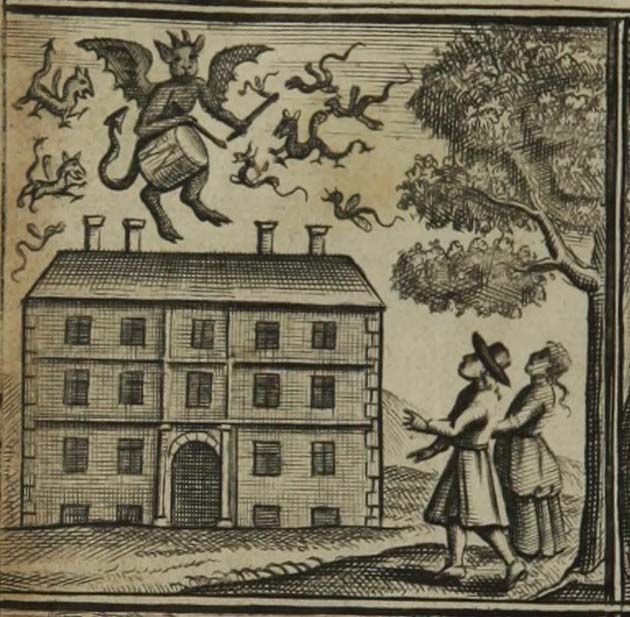 Los criados no pasaron por alto. El baterista los atormentaba también, siempre por la noche. A principios de 1662, parecía que la entidad había encontrado su voz. Cantaba en la chimenea y en la habitación del niño «Soy una bruja». Una noche Mr. Mompesson afirmó que tomó la forma de un perro invisible y corrió junto a su cabecera jadeando.